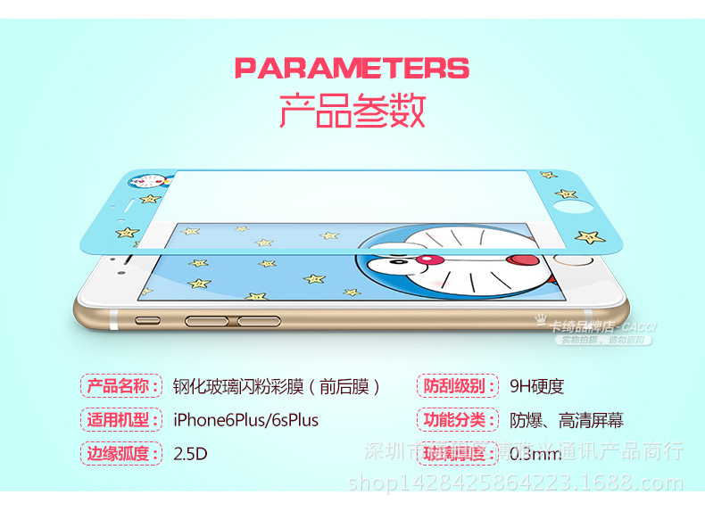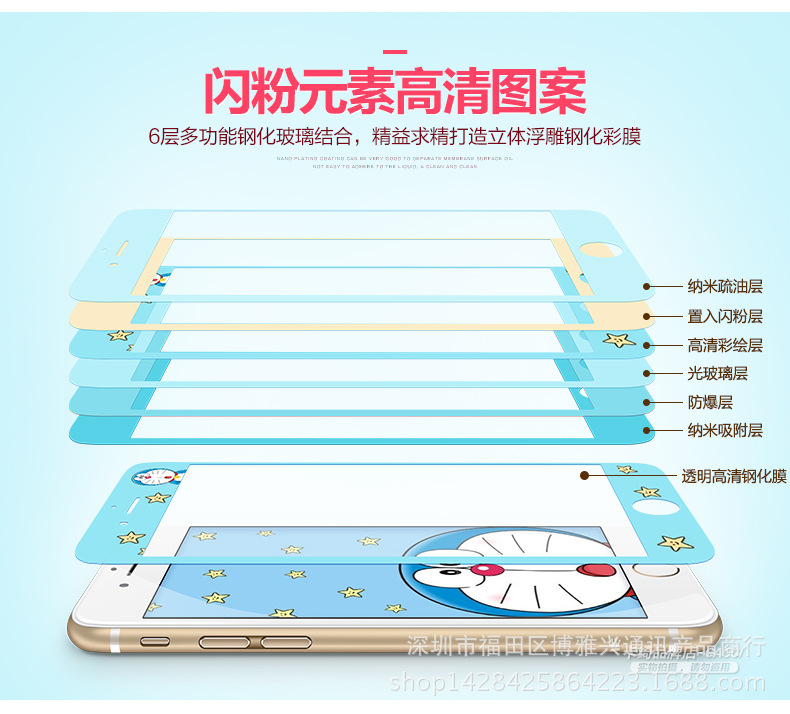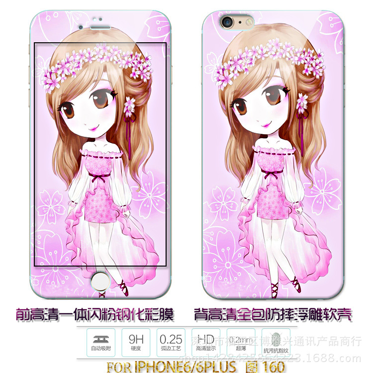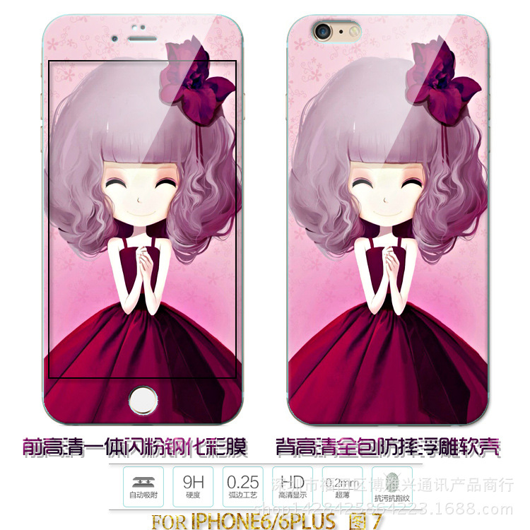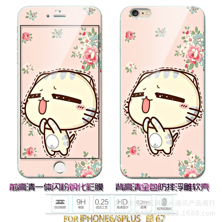| 貼膜類型 | 前麵:彩色卡通鋼化膜,後麵:同款高清浮雕軟殼 |