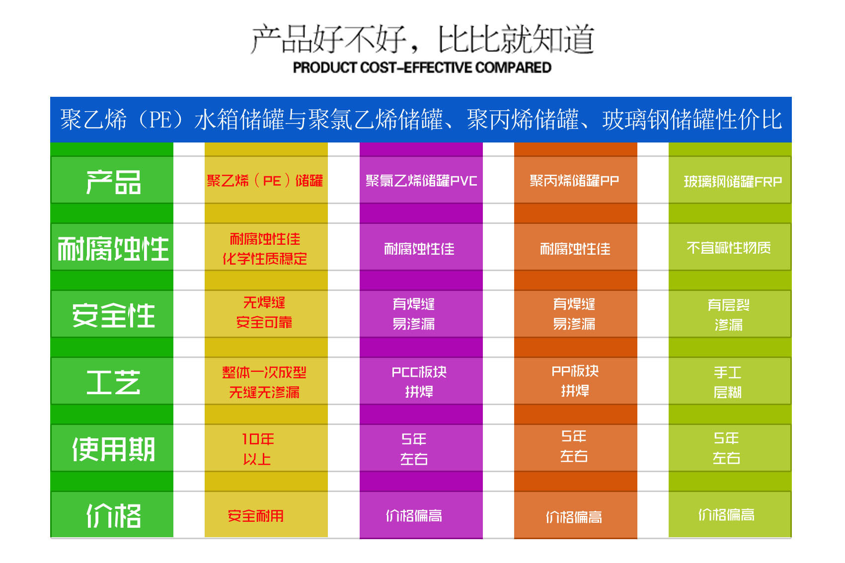 1.公司產品一律采用進口食品級LLDPE滾塑而成,產品可適用於裝水,酸堿鹽及其他化學藥品。