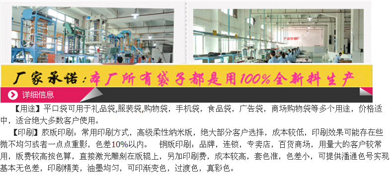2、PE、PO、PP、OPP高、中、低檔禮品廣告明星人像手提袋、手挽袋;卡頭自粘袋、叉耳袋、背心 袋、穿繩袋、貼骨袋、拉鏈袋、特大四方袋、無紡佈袋、防銹包裝袋、PE、PET、PVC、POF熱收縮膜;熱收縮瓶標、全新料再生料平口袋。