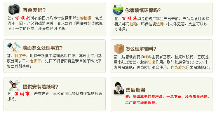 5·關於快遞的問題,如果您開店的地方是市場,有物流網點,我們統一給您發物流!一件壁紙(12卷)10元至20元一件!如果沒有網點的我們給您發快遞,具體按您的地區以及訂貨數量收費!如果遇到快遞超區這也是我們沒有辦法解決的,請不要責怪我們。所以請事先跟客服商量好是否我們的快遞能否到您的地方!以便您是否考慮進貨!