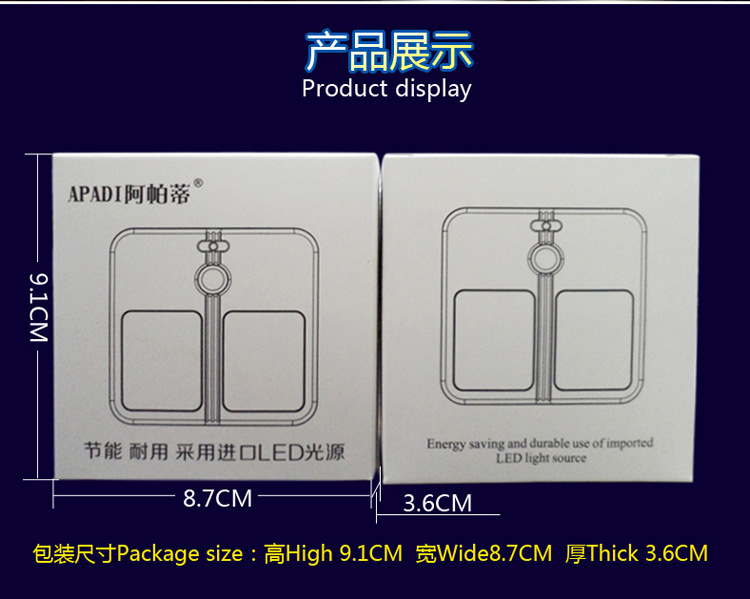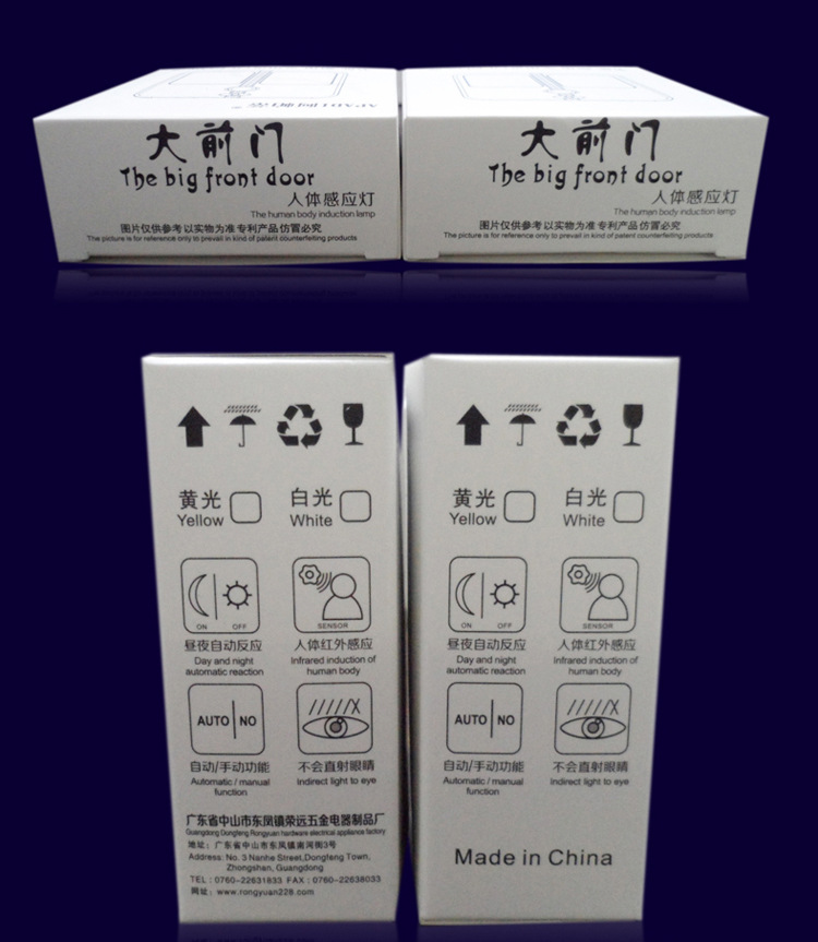 1. 該人體感應燈采用正麵發光設計,光源柔明亮但不直射眼睛,能夠在黑暗中有效起到照明作用the human body induction lamp uses the positive light emitting design, the light source is soft and bright but not the direct eye, can be in the dark to effectively play the role of illumination