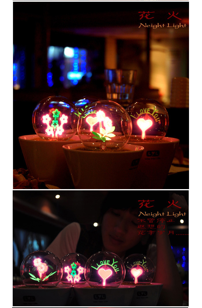 功率:3W 非常省電,即使連續點上一年也隻要幾塊錢的電費,花火夜燈的主要功能是營造浪漫氛圍,提供夜間照明