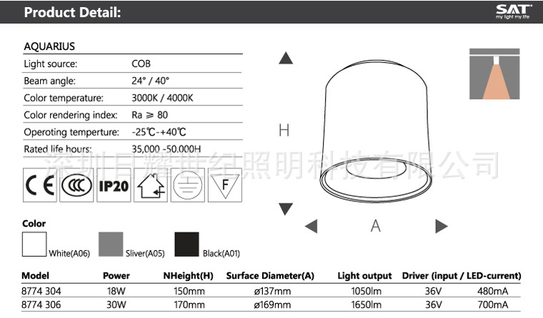 Color rendering index(顯色系數): | Ra ≥ 80 |