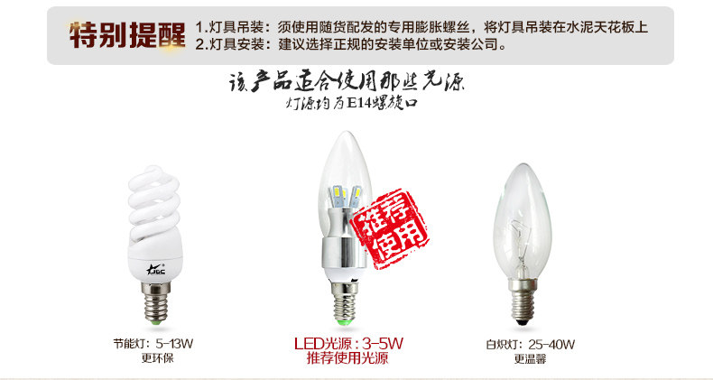感謝各位兄弟朋友對我們的關註與厚愛。我們將誠摯地給各位提供質優、實惠的產品及服務,希望能給淘友們帶來滿意、愉快的網購體驗。 為瞭避免購買燈具過程中發生不必要的麻煩及誤解,請各位在購買前仔細閱讀、瞭解我們的產品銷售細則。如果有不明之處請隨時與我們的客服聯系,客服會很耐心,詳盡地為您解答。 。