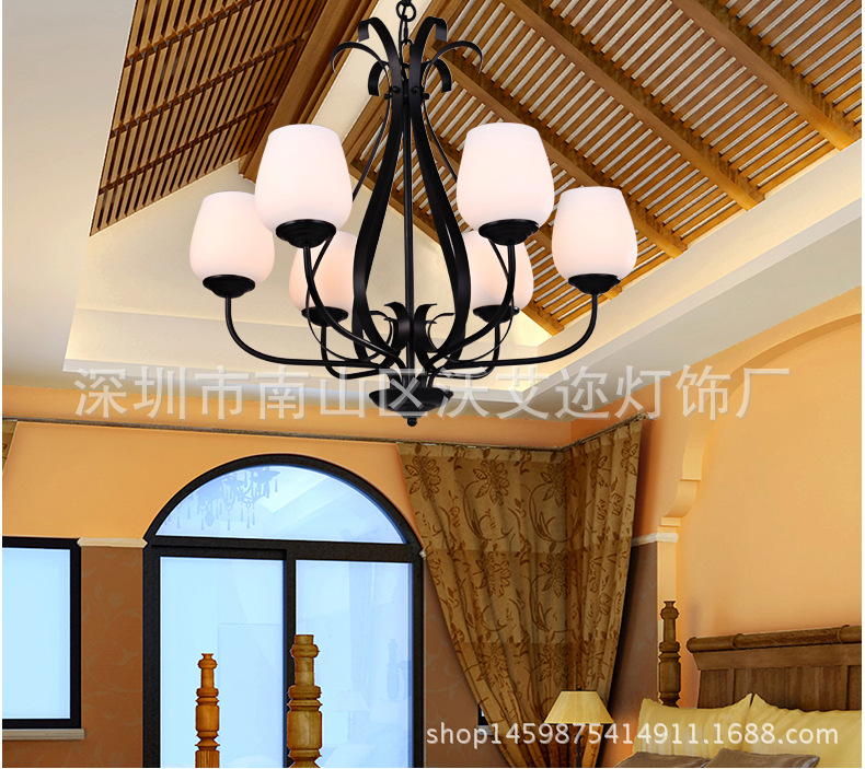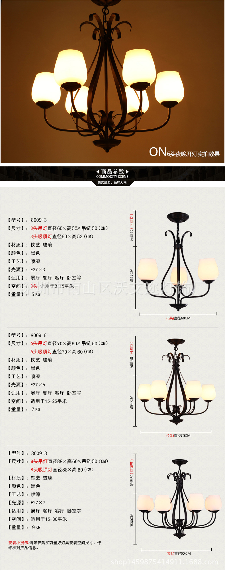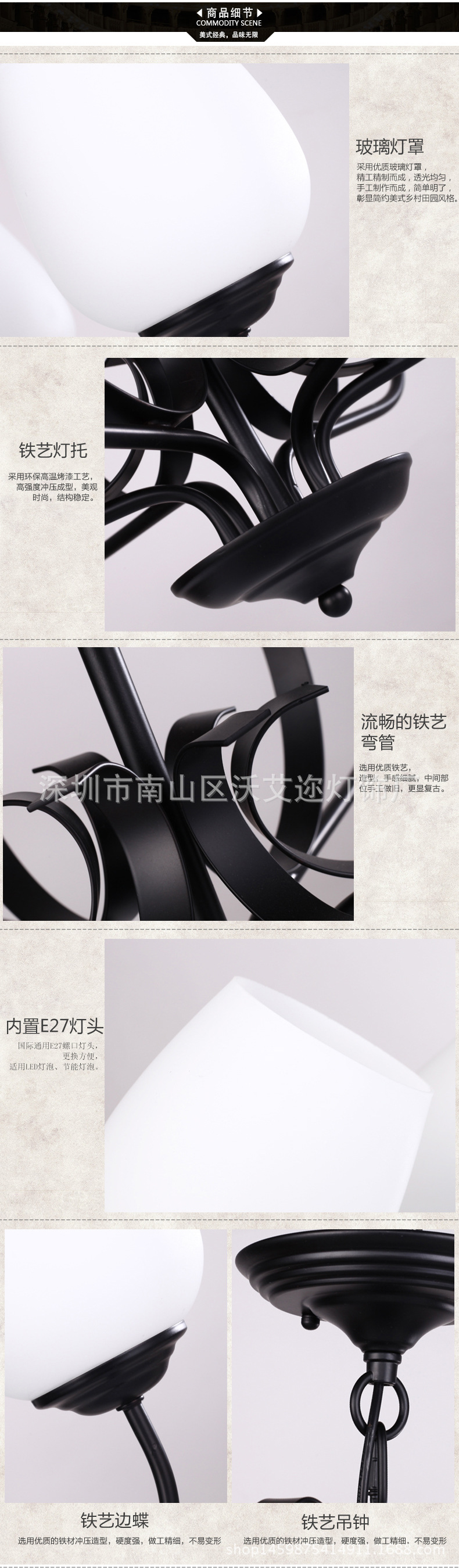美式鄉村鐵藝吊燈個性藝術創意玻璃簡歐復古燈臥室書房餐廳客廳燈_普通光源照明_常規照明_建築建材_貨源_批發一路發