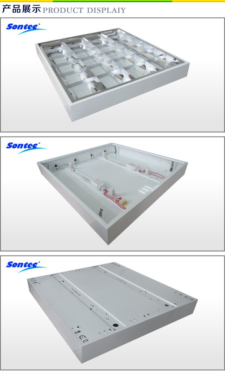 【格柵燈盤電氣性能】:內可裝SONTEC牌電子或電感鎮流器,無噪音、溫升低、功耗小、壽命長。
