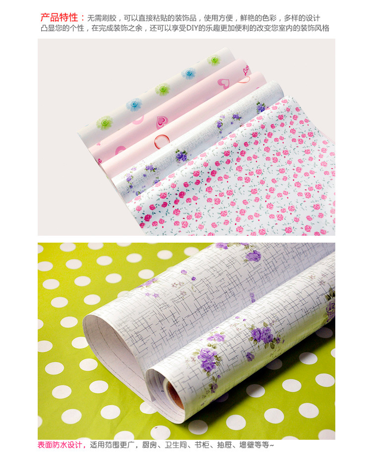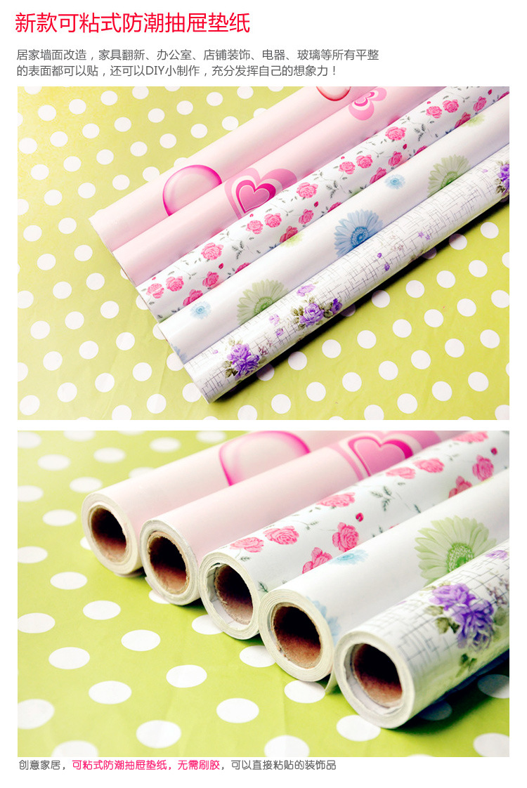 [商品名稱] | 韓版可愛傢居 多色花朵 防黴防潮自粘墻紙貼畫抽屜櫥櫃 貼紙墊紙批發 | |