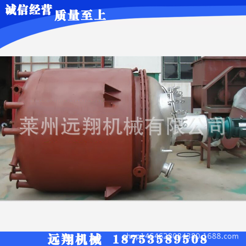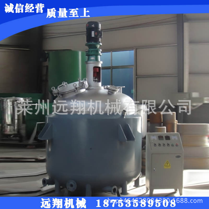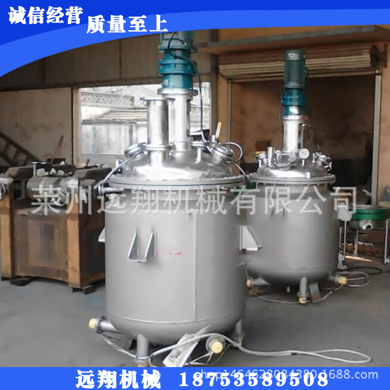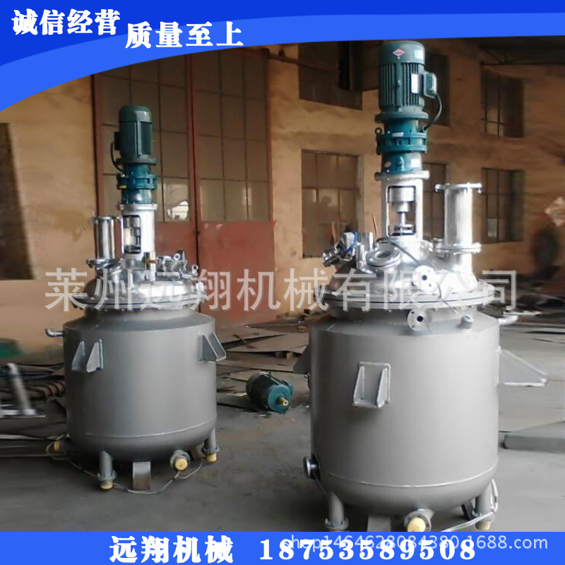 反應釜的構造原理、特點:反應釜由鍋體、鍋蓋、攪拌器、夾套、支承及傳動裝置、軸封裝置等組成,材質及開孔可根據用戶的工藝要求製定。加熱形式有電加熱、油加熱、氣加熱、水加熱(或冷卻)、明火加熱等。夾套形式分為:夾套型和外半管型,夾套油加熱型都設有導流裝置。攪拌形式一般有槳式、錨式、框式、螺條式、刮壁式等。高轉速類有分散葉輪式、渦輪式、高剪切式、推進器式,供客戶根據工藝選擇。傳動形式有普通電機、防爆電機、電磁調速電機、變頻器等,減速器有擺線針輪式、蝸輪式、行星無極變速式。軸封為普通水冷卻填料密封、組合式四氟填料密封、機械密封。出料形式有球閥、下展閥。
