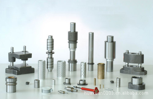 1.五金沖壓配件和塑膠模具配件:沖頭沖針、導柱導套、定位銷、浮升銷、等高套筒、獨立導柱、外導柱組件、輔助器、滾珠套、日期章、蝶形彈簧、司筒、頂針、托針、扁頂針、模架等。