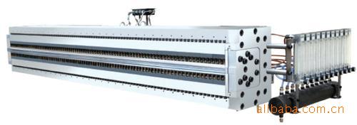 在模唇部可得到連續無阻攔的流麵,帶有上,下模唇厚度可調節,能夠滿足不同厚度製品的需求,帶有吹氣裝置。