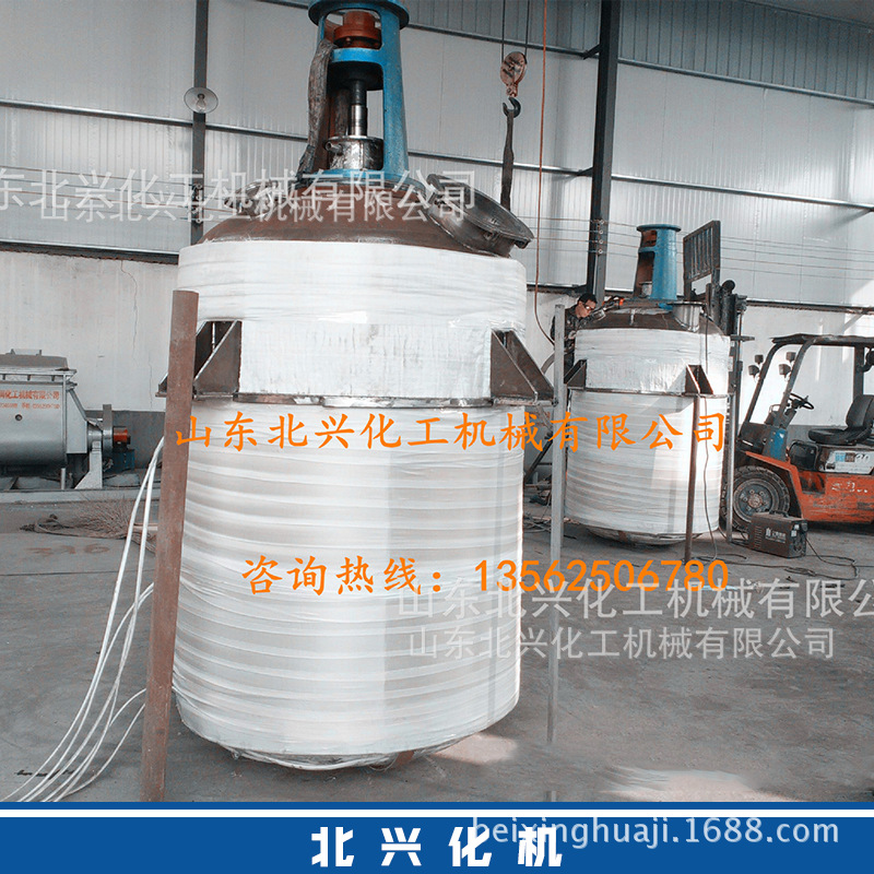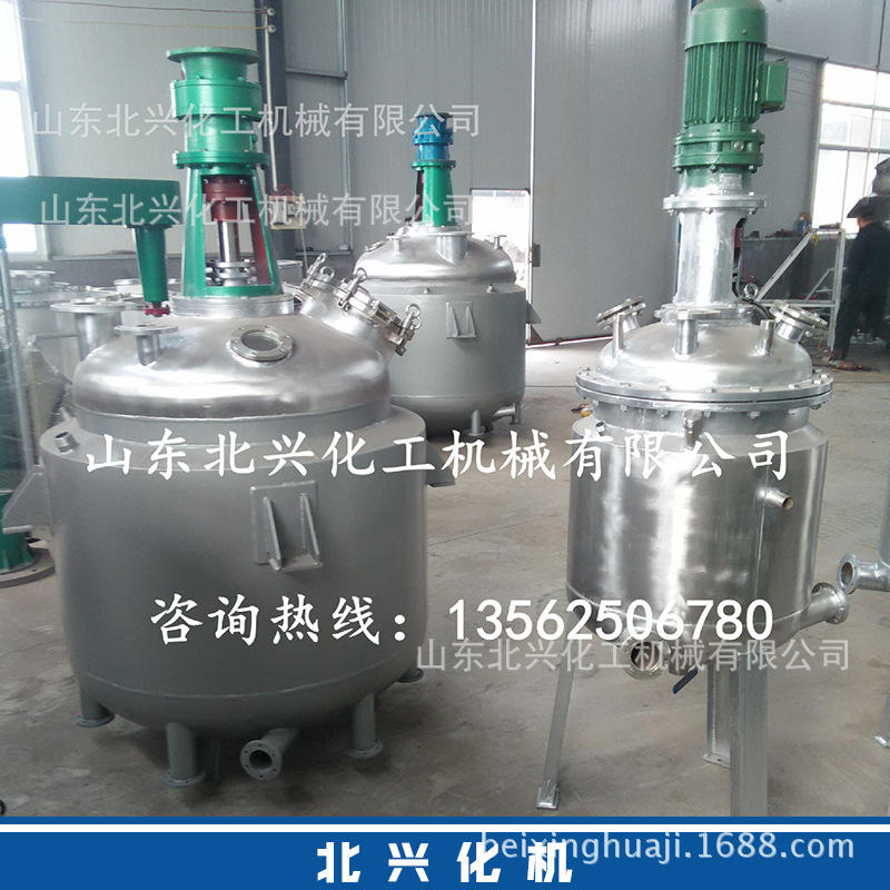 反應釜由釜體、釜蓋、夾套、攪拌器、傳動裝置、軸封裝置、支承等組成。攪拌形式一般有錨式、槳式、渦輪式、推進式或框式等,攪拌裝置在高徑比較大時,可用多層攪拌槳葉,也可根據用戶的要求任意選配。並在釜壁外設置夾套,或在器內設置換熱麵,也可通過外循環進行換熱。加熱方式有電加熱、熱水加熱、導熱油循環加熱、遠紅外加熱、外(內)盤管加熱等,冷卻方式為夾套冷卻和釜內盤管冷卻,攪拌槳葉的形式等。支承座有支承式或耳式支座等。轉速超過160轉以上宜使用齒輪減速機.開孔數量、規格或其它要求可根據用戶要求設計、製作。