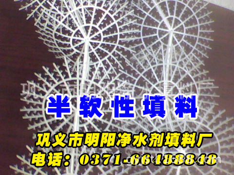半軟性填料具有散熱性能高,阻力小,佈水、佈氣性能好,易長膜,又有切泡作用。它所用的材料有聚丙烯、聚乙烯製成。用於污水、廢水處理工程,配套於接觸氧化塔、氧化池氧化槽等設備。