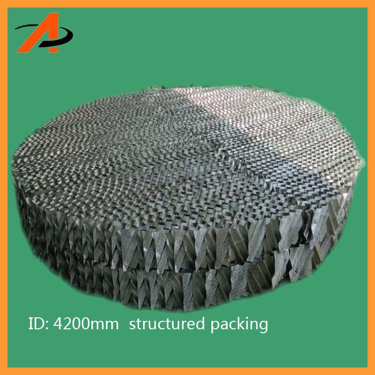 規整填料是一種在塔內按均勻幾何圖形排佈,整齊堆砌的填料。由於具有比表麵積大、壓降小、流體分均勻、傳質傳熱效率高等優點,因此得到瞭廣泛的應用。最早開發的是金屬規整填料,以後相繼開發的有塑料規整填料、陶瓷規整填料和碳纖維規整填料。