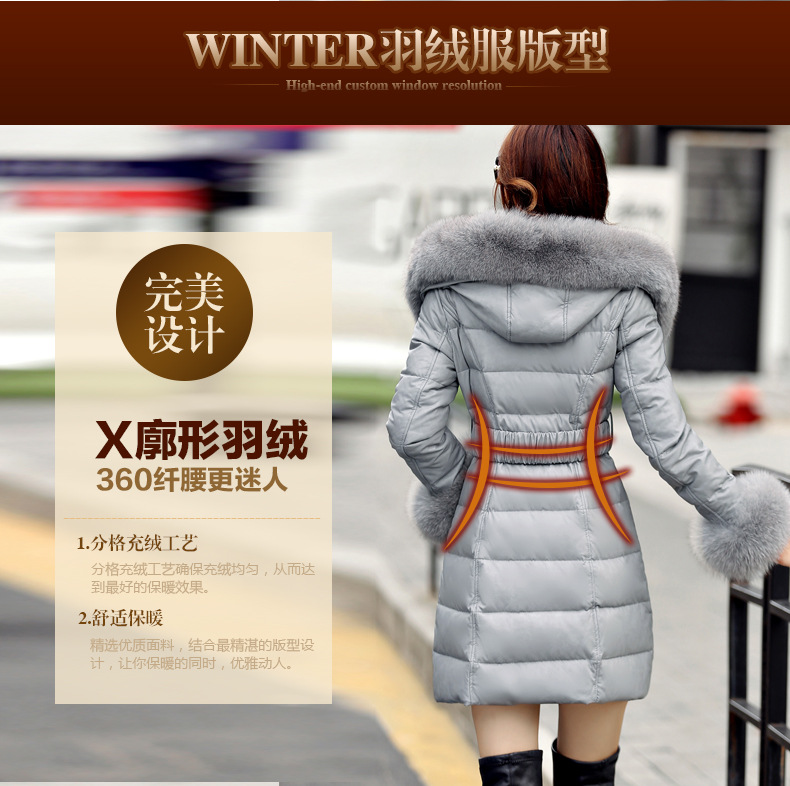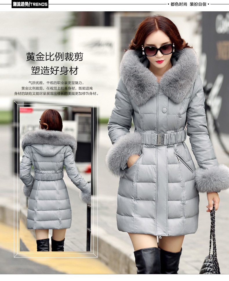 2016冬季新款奢華狐貍毛領真皮羽絨衣女中長款大碼修身皮衣羽絨衣