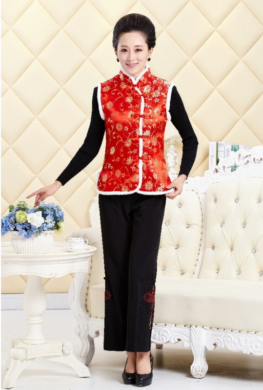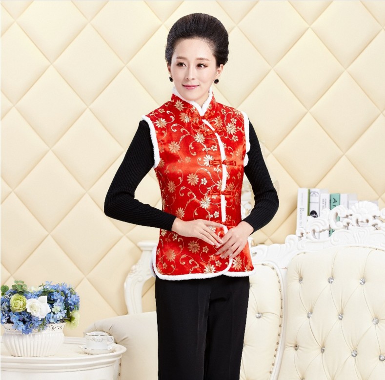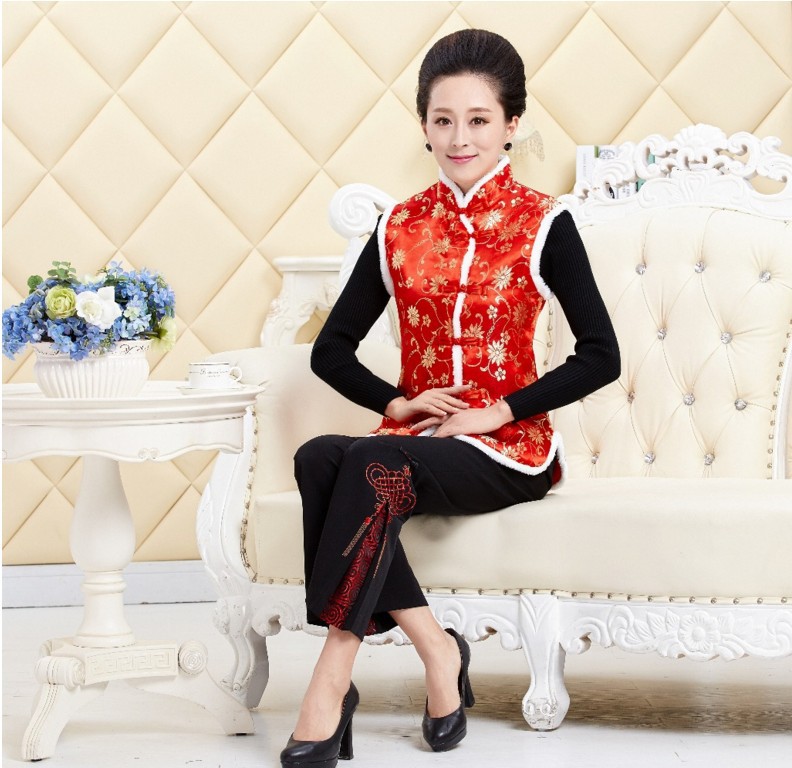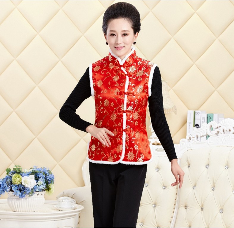 秋冬新款無袖立領毛馬甲背心中國風女士唐裝馬甲