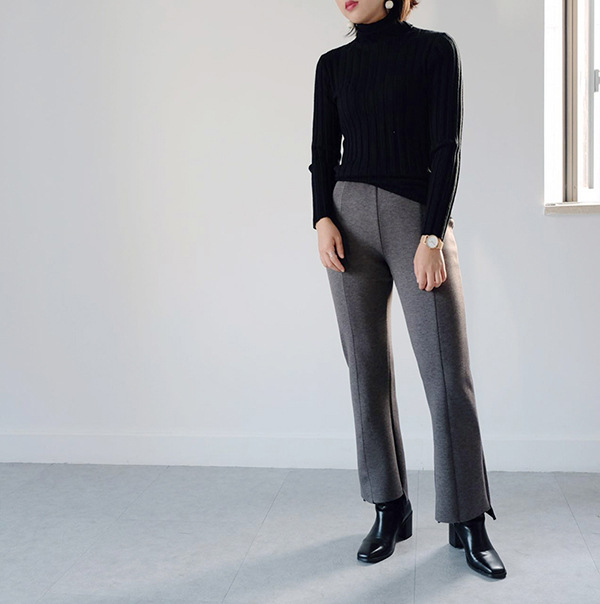穿出好的腿型,功勞必定是一條版型超正的褲子。這款絕對沒有安利錯。 正麵的褲骨令版型簡潔利落,直筒微喇褲型完美修飾腿部線條,第三行 空氣層麵料厚薄適中,橡筋腰頭的設計搭配乾練又時髦。