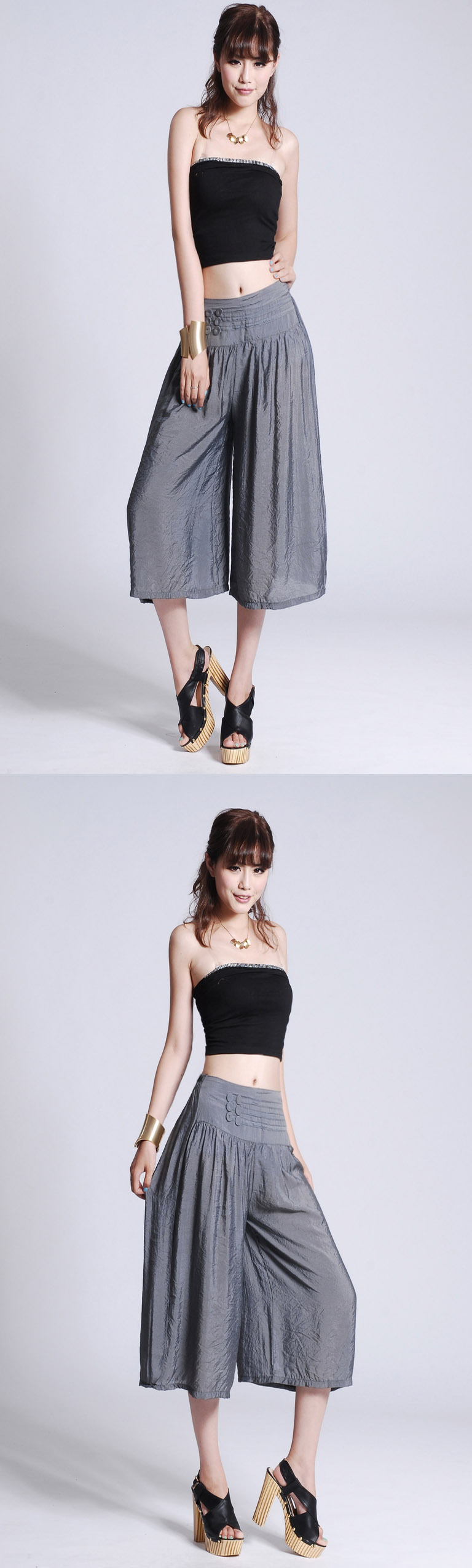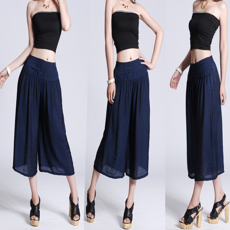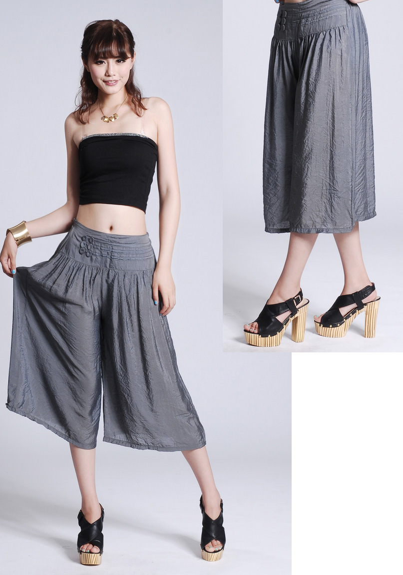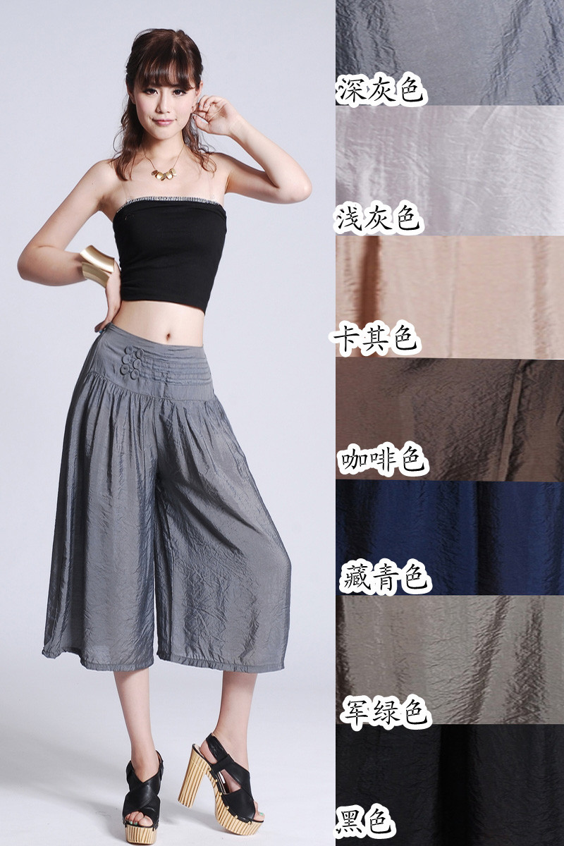 涼爽一夏天高檔絲光織錦緞闊腿褲 燈籠褲 中褲