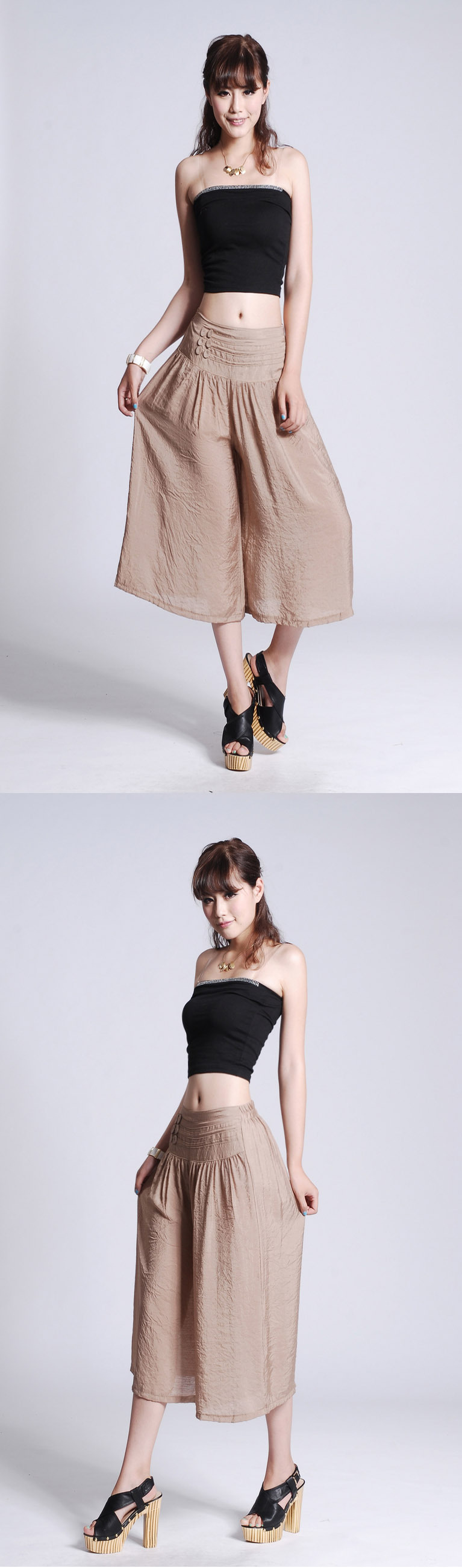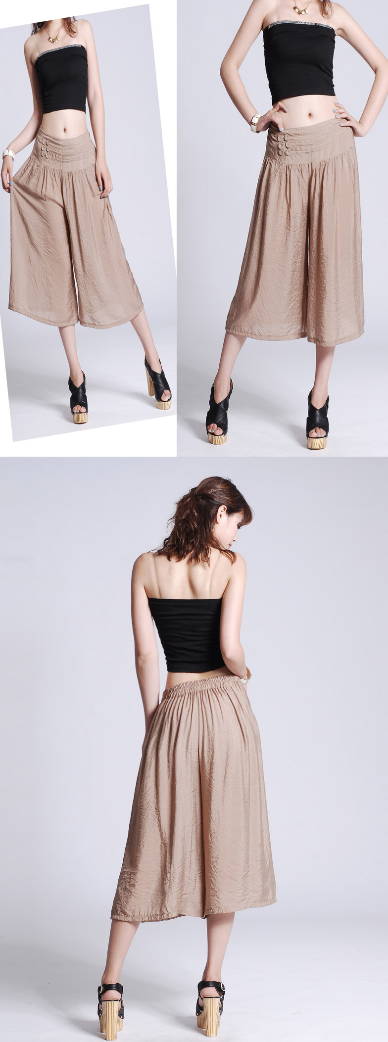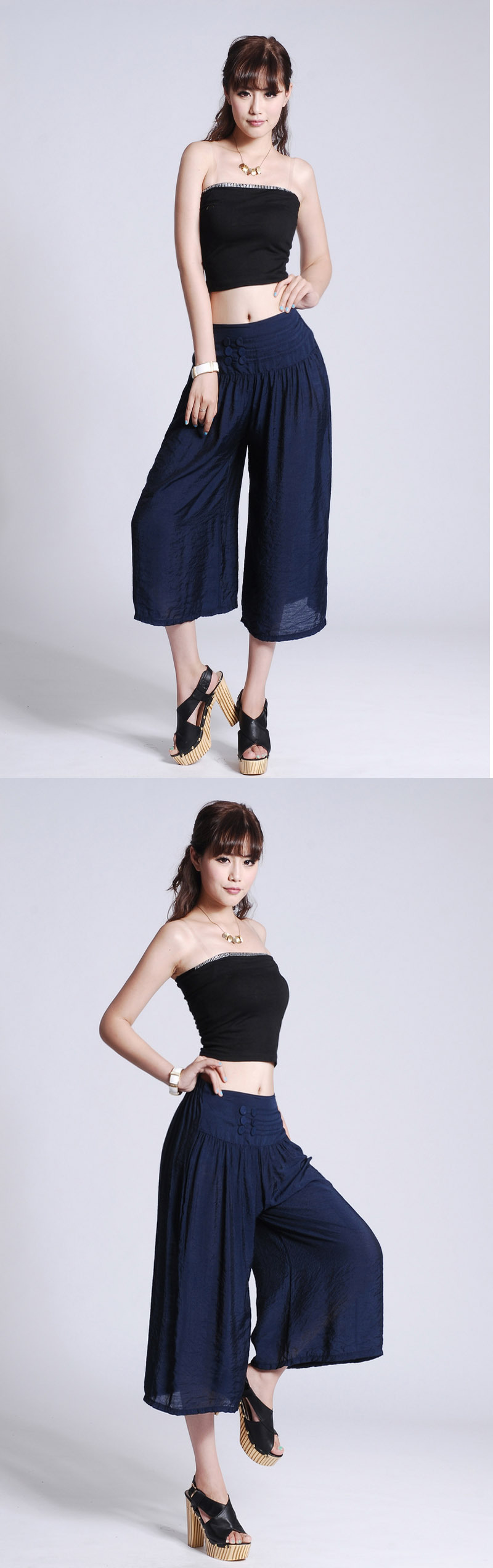 涼爽一夏天高檔絲光織錦緞闊腿褲 燈籠褲 中褲