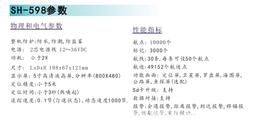 SH-598 二合一海圖機性能參數