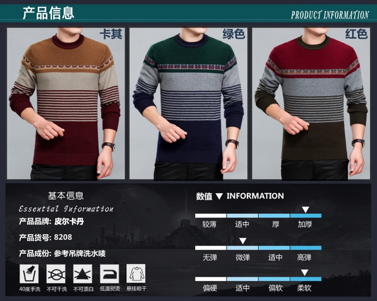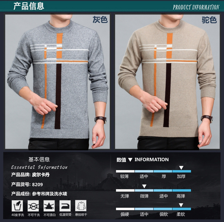 正品皮爾卡丹羊絨衫男圓領冬季加厚毛衣新款 貂絨衫男套頭針織衫