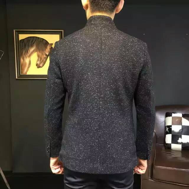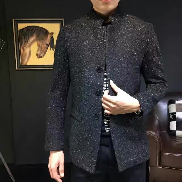 羊毛西裝??中式改良的小立領挺拔俊秀.穩重優雅.使人沉靜在瞭一片“高級黑”色調中~客供進口麵料37.7羊毛17棉21聚酯纖維21晴綸3.3錦綸