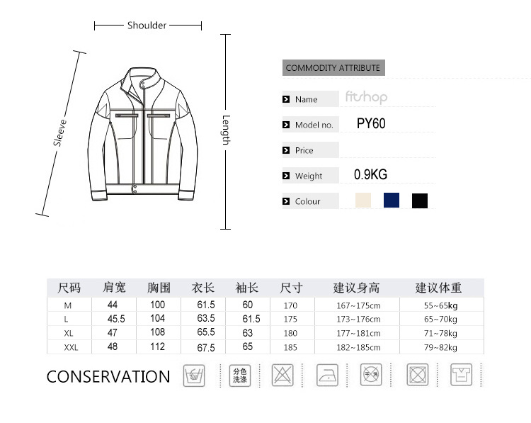建築版的廓型 比照國際大牌的夾克的廓型,在胸圍和肩寬的比例反復斟酌,適度加寬的設計,穿上身就有T臺男模般的建築廓型美感。 | |