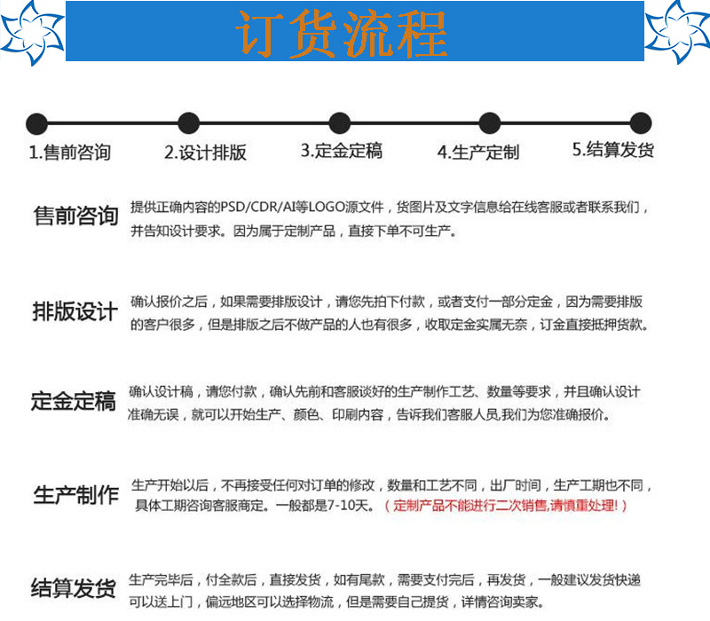 (2)商品質量:所有商品均為自主生產,我們在發貨前都有專門部門進行嚴格質檢,確保無任何質量問題,才給與發貨。