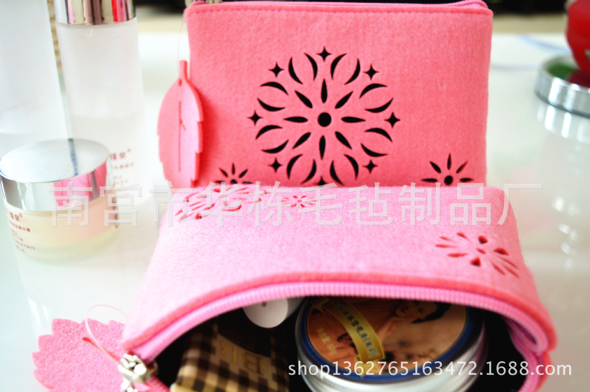 - 名稱: 創意鏤空毛氈化妝包