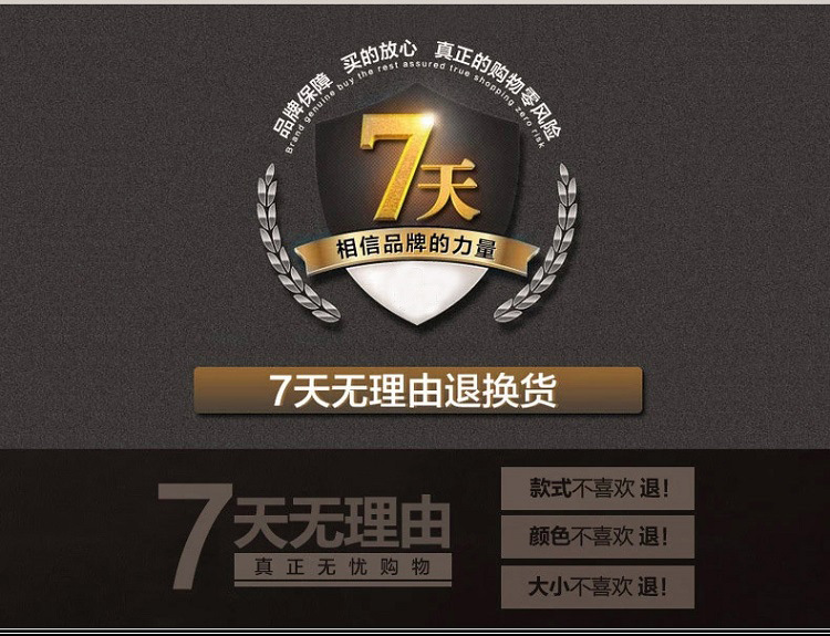 4、買方如需進行更換顏色、尺碼等進行更換產品,由買傢支付,換貨請保持商品出售時原包裝以及配件齊全(吊牌等)。