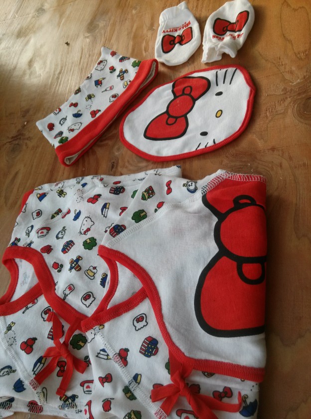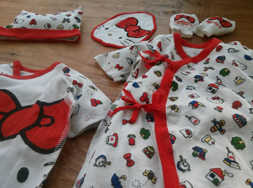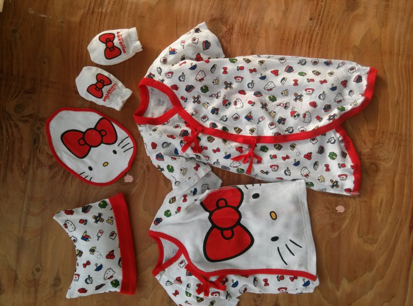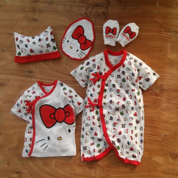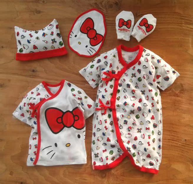 hellokitty原單正品,蝴蝶衣+偏衫+口水巾/奶巾+帽子+防抓手套=五件套