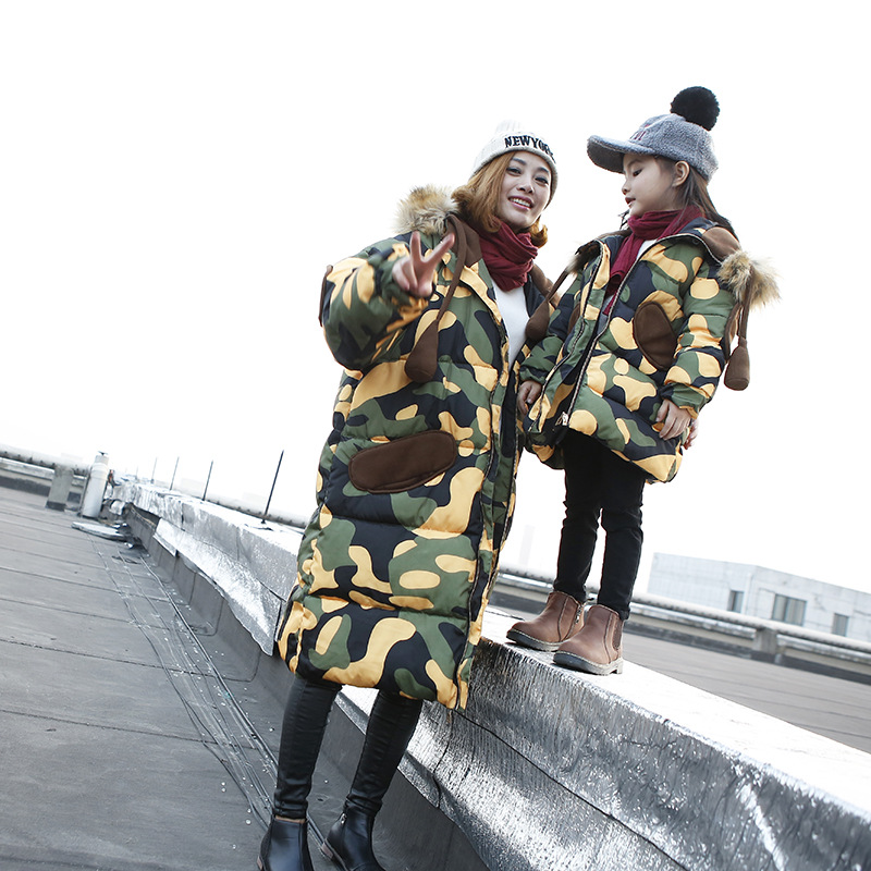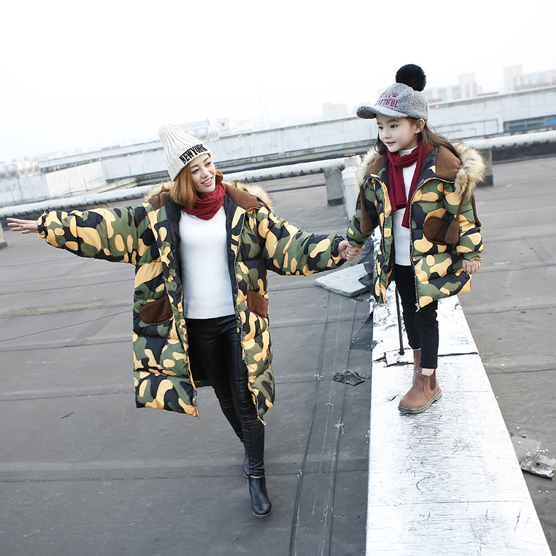 2016冬裝新品韓版貉子毛連帽加厚寬松中長款迷彩女大碼潮牌
