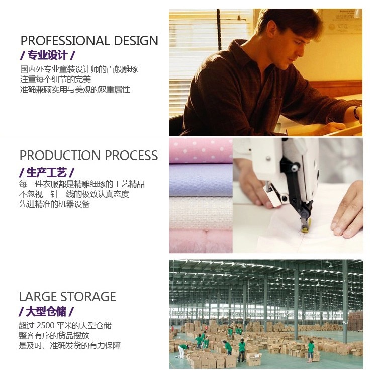 在生產中我們還搭配高級磨毛工藝,與活性印染技術生產出的潮流童裝,透氣,個性百搭。在細節之處我們也處理的完美到位,處處彰顯大品牌品質。
