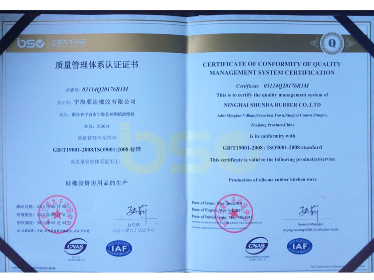 我司以嚴格的標準控製產品的質量,擁有ISO9001:2008質量體系認證,因重合同、守信用,多次獲得“誠信企業”等榮譽嘉獎,同時我司也是寧波市首傢食品接觸類產品的一類企業,產品符合LFGB、DGCCRF、FDA等食品衛生標準。