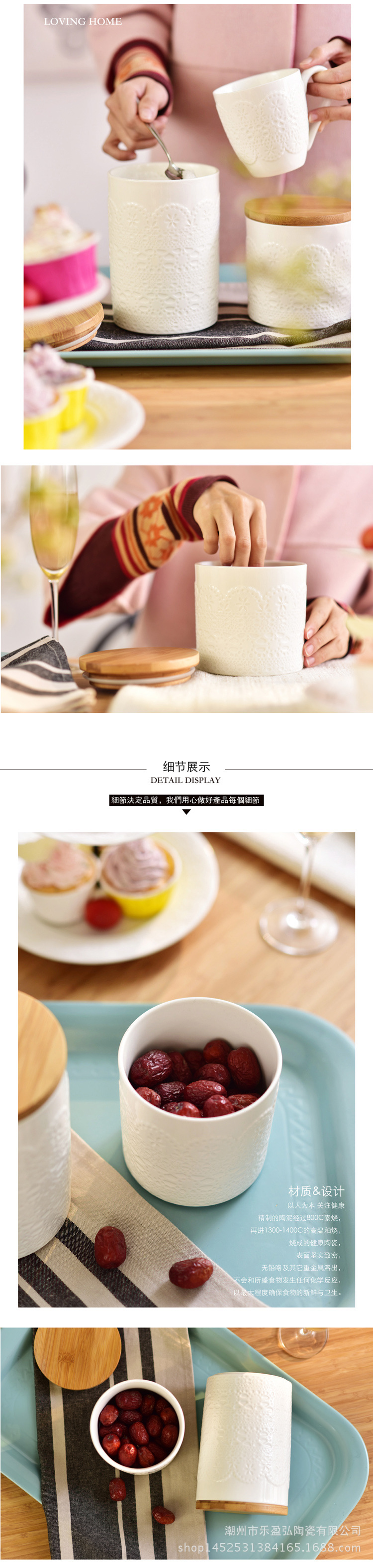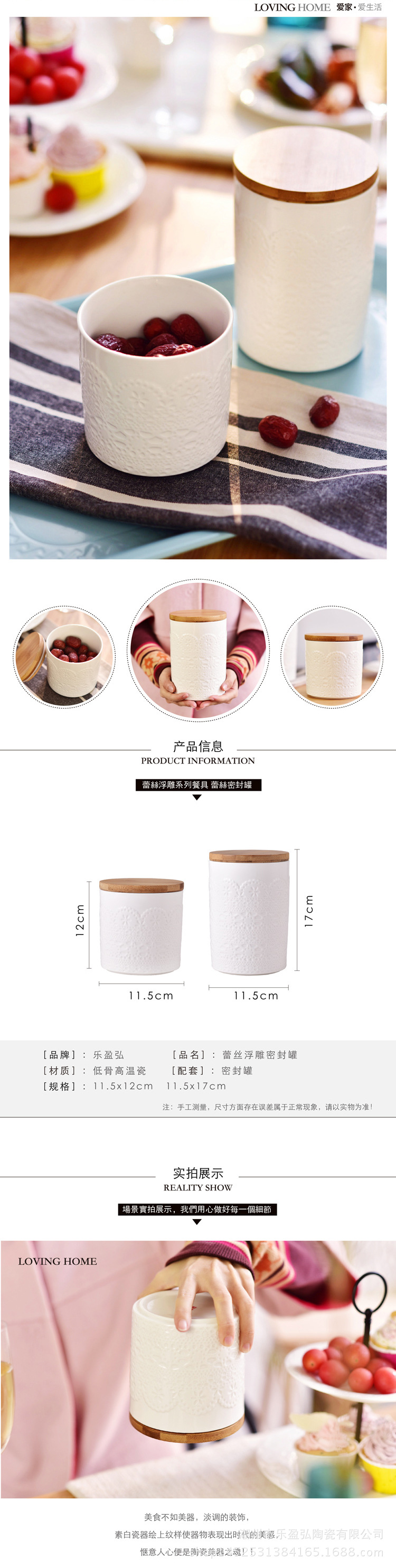 - 名稱: 高檔蕾絲浮雕16cm廚房陶瓷密封罐