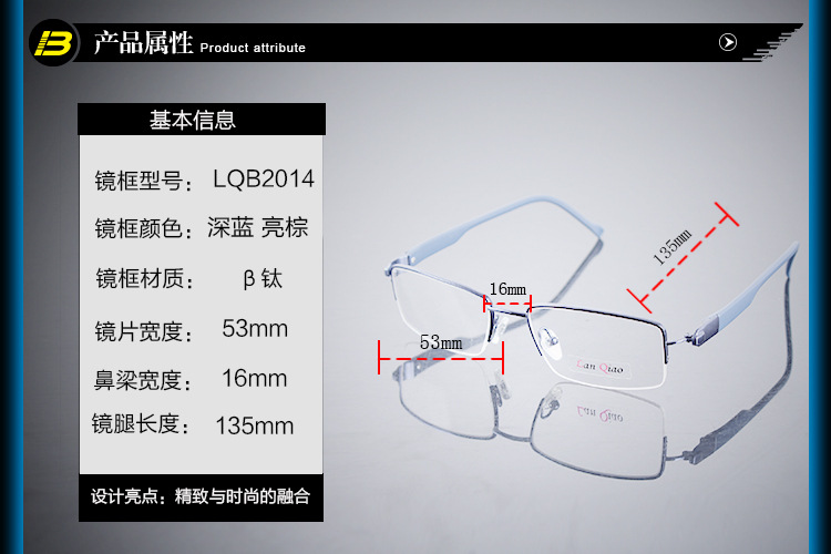 | 品牌 | 藍橋 | 產品類別 | 眼鏡框 | 材質 | B鈦 |