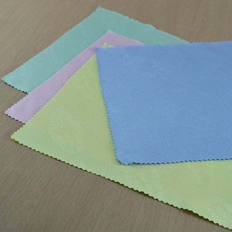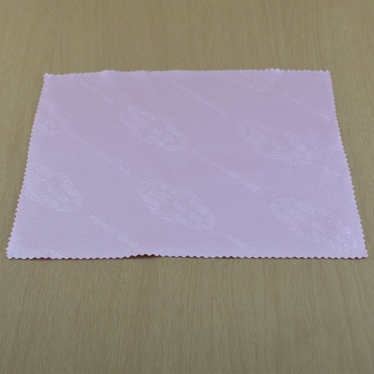 眼鏡佈的規格和顏色是可以變動的。常用規格有140150、145X175,常用顏色有四色混裝(粉紅、黃色、藍色、綠色)、白色、灰色、黑色。切邊形狀最常用的是鋸齒邊、如果量大也可做圓角直邊、直角直邊、或月牙邊。眼鏡佈由於顏色和質地的不同,在製作LOGO的時候適用的工藝也不同,顧客朋友在訂貨的同時可以詢問客服,我們的客服定會根據你具體的貨品情況推薦最佳製作效果的方式。