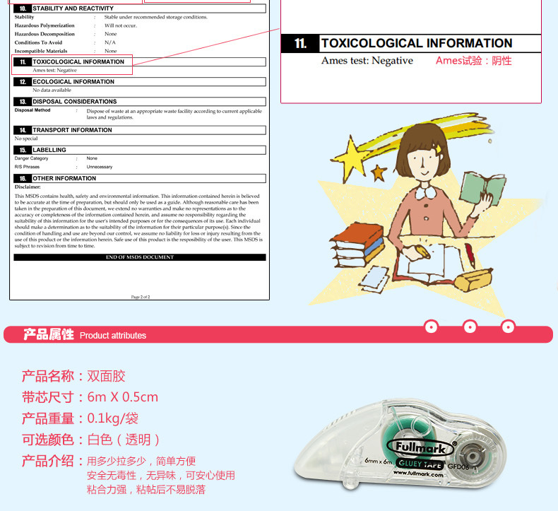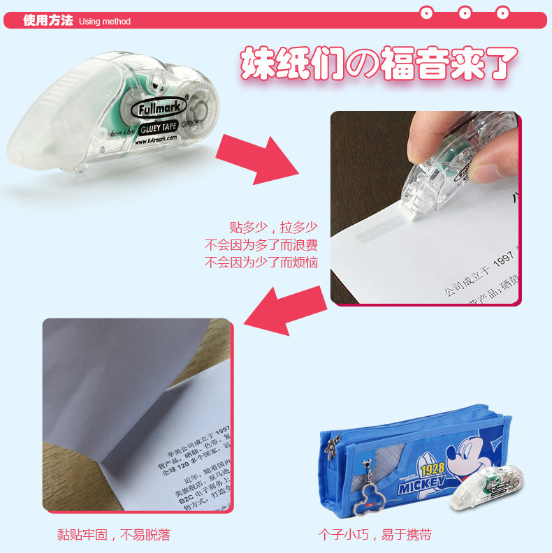 - 修正帶采用日本PET膠帶,安全無毒無異味。