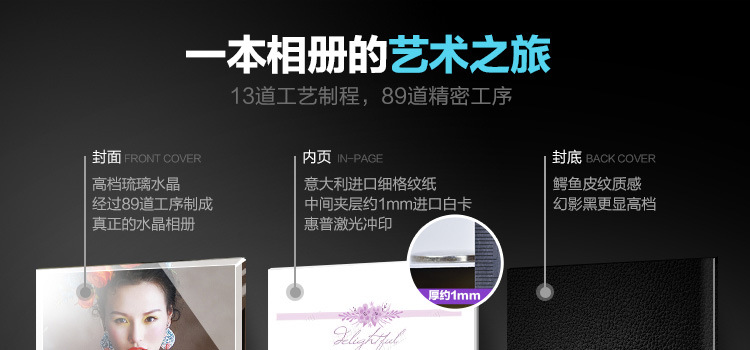 | 加工定製 | 是 | 封麵顏色 | 1-5本,6-20本,21本-50本,51本以上 | 內頁頁數 | 18寸水晶相冊,16寸水晶相冊,12寸水晶相冊,10寸水晶相冊,8寸水晶相冊 |