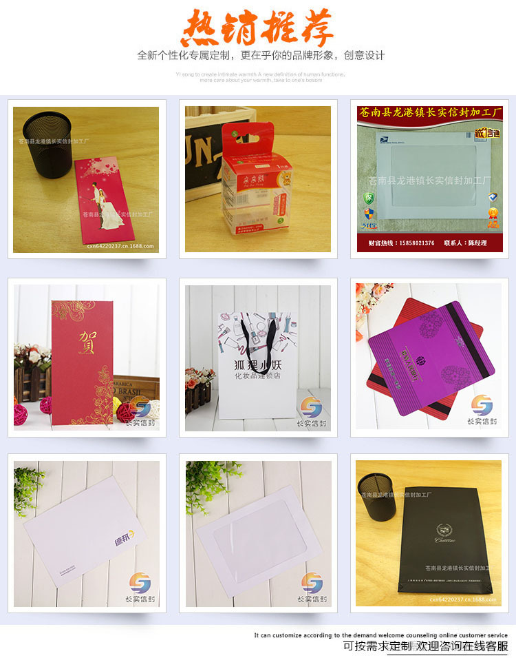 浙江.蒼南.龍港.長實信封廠簡介 業務范圍:專業機器加工中心.西式信封、各種紙袋、大小紅包 檔案袋 、M邊袋,銀行取款袋。日生產各種信封50萬隻、小紅包100萬隻 | ||