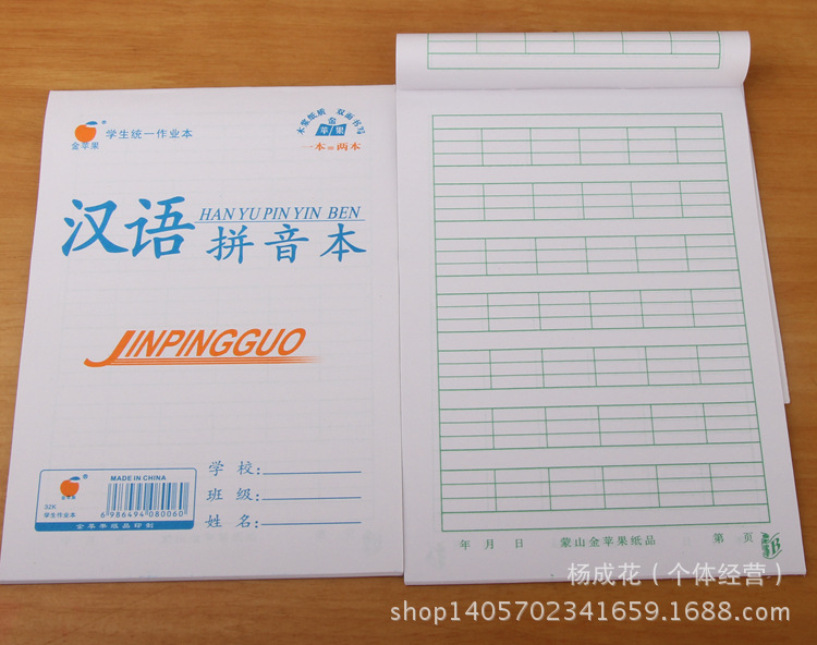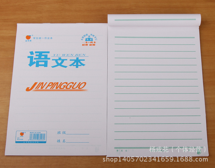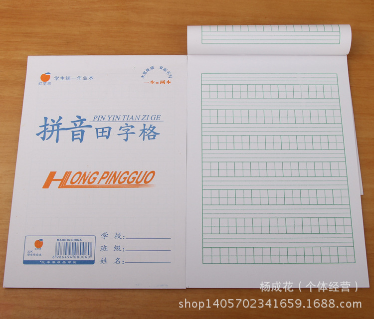 | 附帶物品 | 無 | 是否進口 | 否 | 封麵顏色 | 田字格,拼音田字格,算術本(數學本),漢語拼音,方格本,語文本,小英語,圖畫本 |