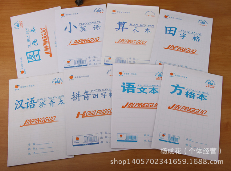 【類別】:有拼音田字格、算術本(數學本)、田字格、漢語拼音 方格本 語文本 小英語 圖畫本 8種