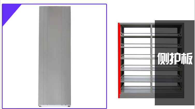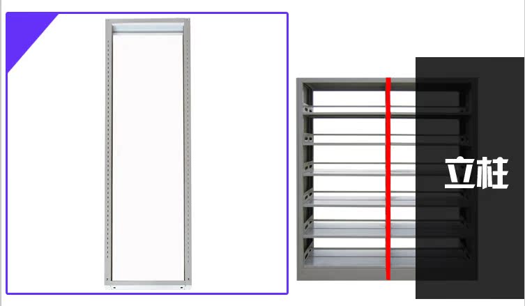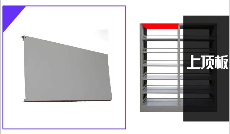 1.書架為框架結構:由底座、立柱、擱板、掛板、頂板、側護板、書擋等部分組成。