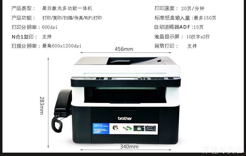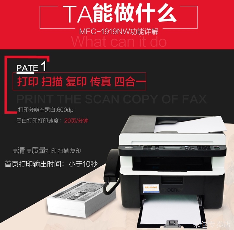 | 建議零售價 | ¥1500.00 | 品牌 | brother/兄弟 | 型號 | MFC-1919NW |