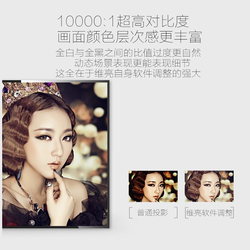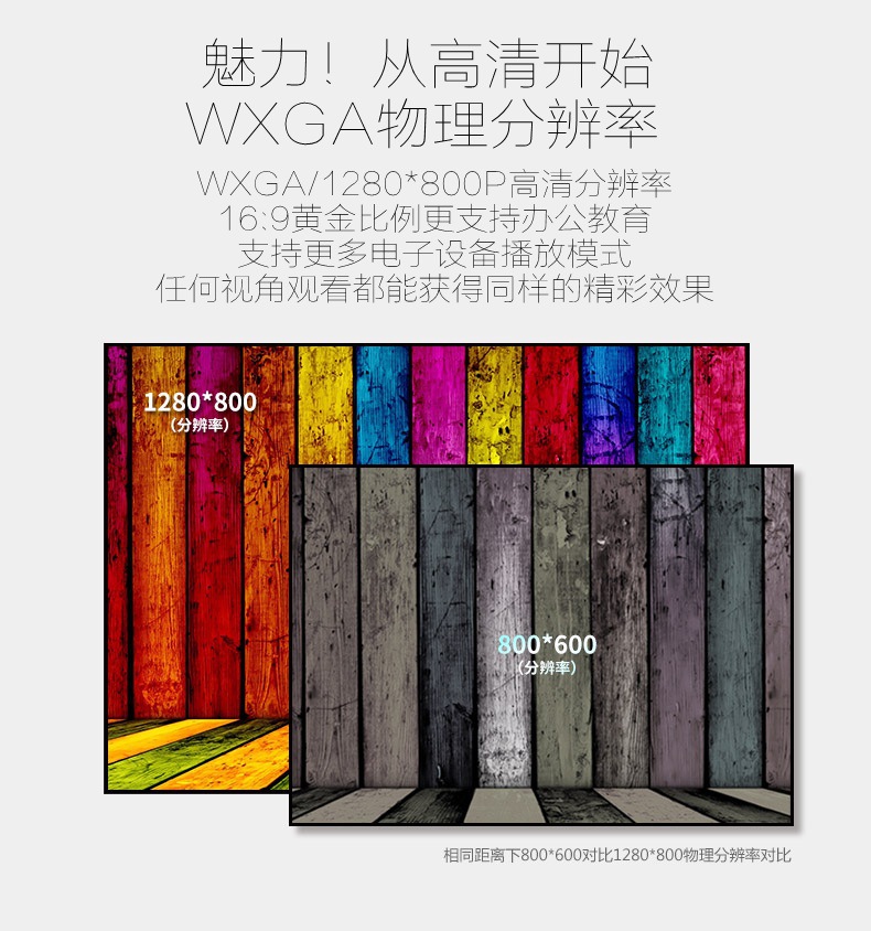 | 分辨率 | 1280800,5.8寸 | 亮度 | 2800ansi lumens | 投影鏡頭 | 隱藏式手動鏡頭設計 |