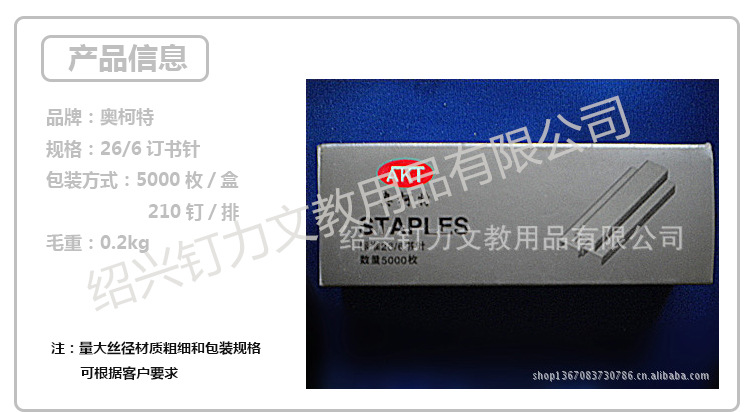 | 品牌 | 奧柯特 | 材質 | 鍍鋅鐵絲 | 規格 | 26/6(深6mm*寬11.5mm) |