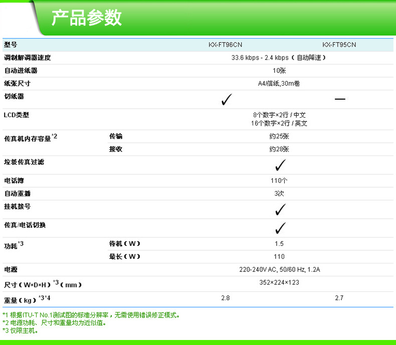 | 建議零售價 | ¥799.00 | 品牌 | Panasonic/松下 | 型號 | KT-FT96CN |