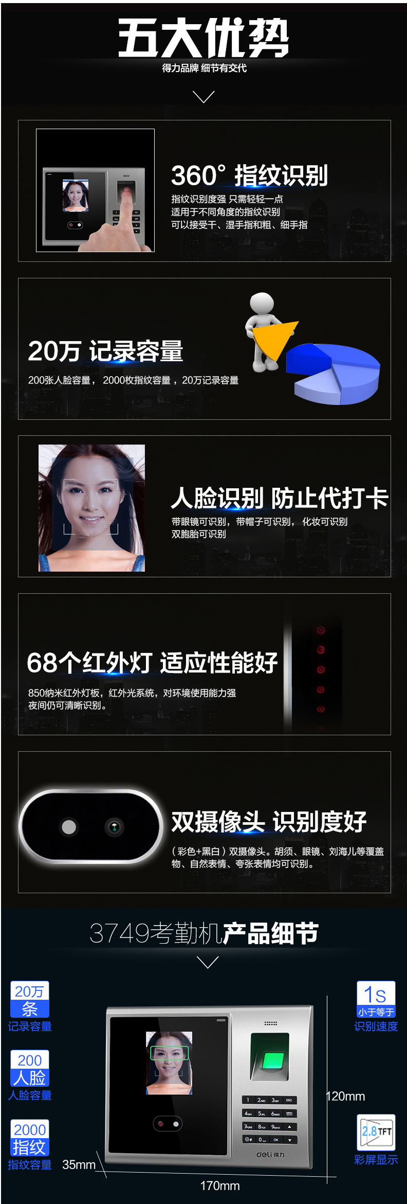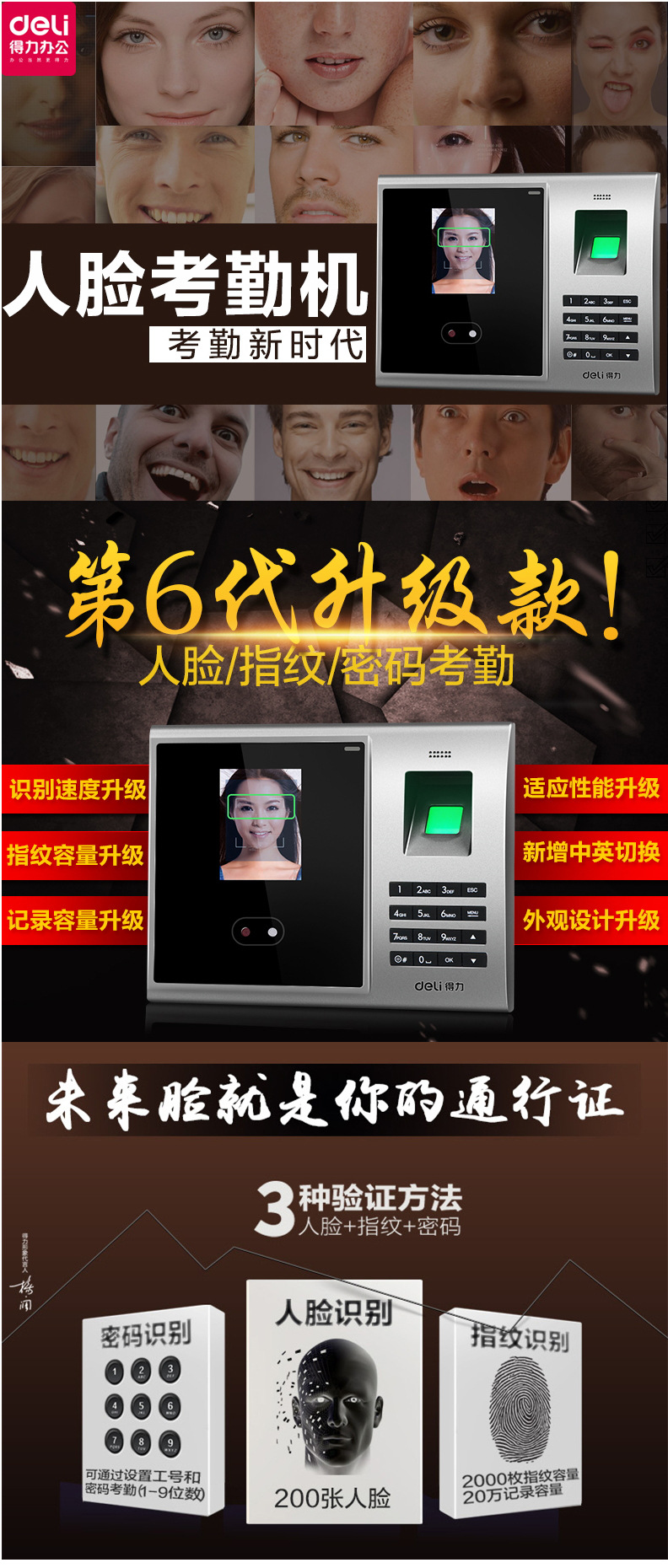 | 類型 | 人臉 | 品牌 | deli/得力 | 外形尺寸: | 120*170*35MM |