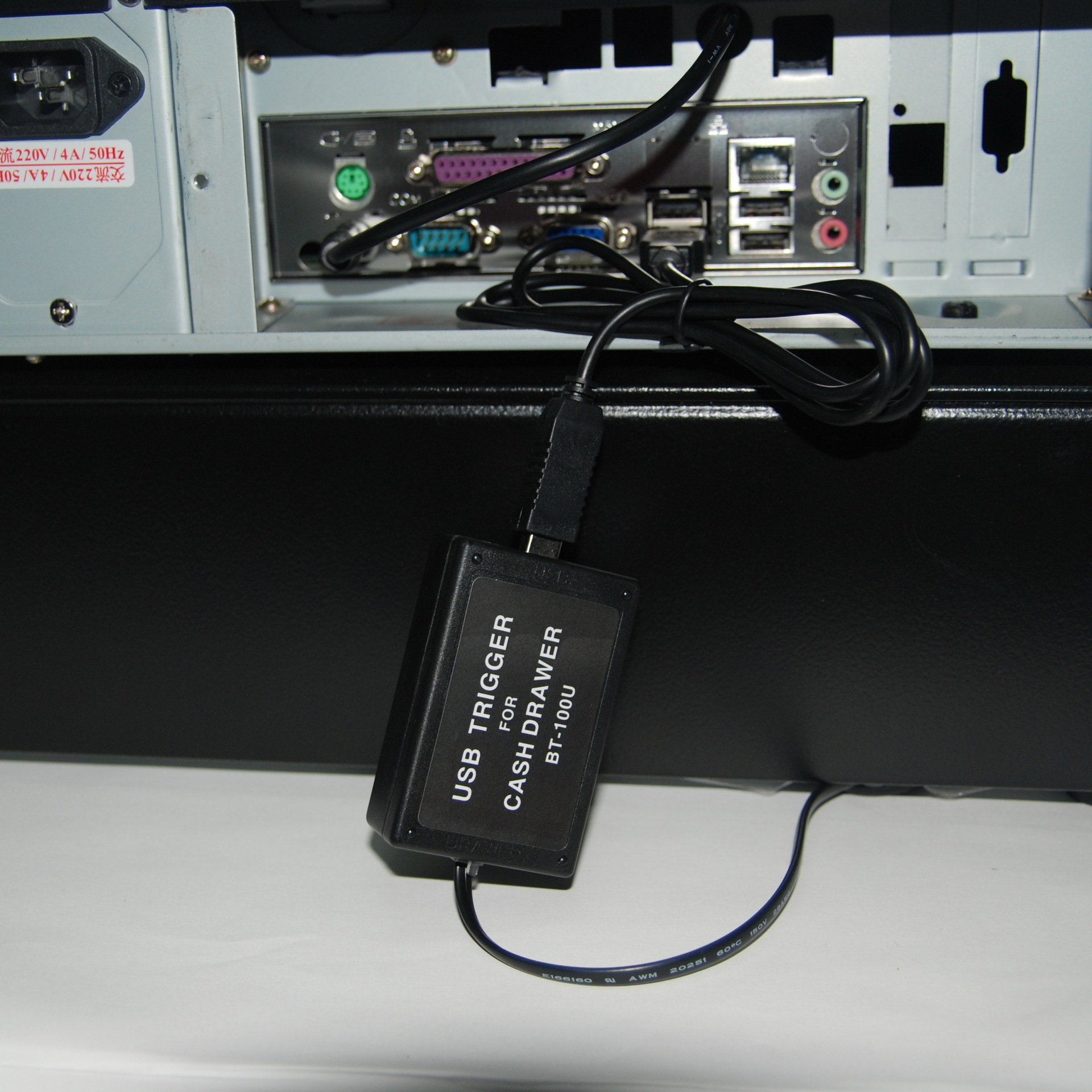 BT-100U錢箱驅動盒提供瞭一個USB介面用來連接錢箱和電腦,也就是說,它可以不用打印機(或者顧客顯示器),而是直接由電腦發送指令的形式打開錢箱。