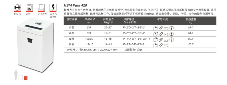 | 品牌 | 海斯曼 | 型號 | Pure 420 | 碎紙能力 | 25-27~11-13(張/次) |