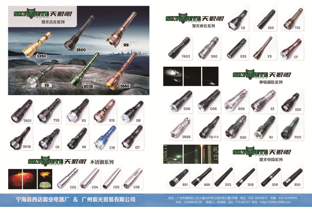 【1】歡迎光臨本店,廣州宸光貿易有限公司是一傢專業從事戶外照明產品的公司,旗下企業有:寧波宸光照明電器廠、廣州宸光貿易有限公司、天狼眼品牌批發店。宸光公司是集生產、訂單、批發、銷售於一體的企業。